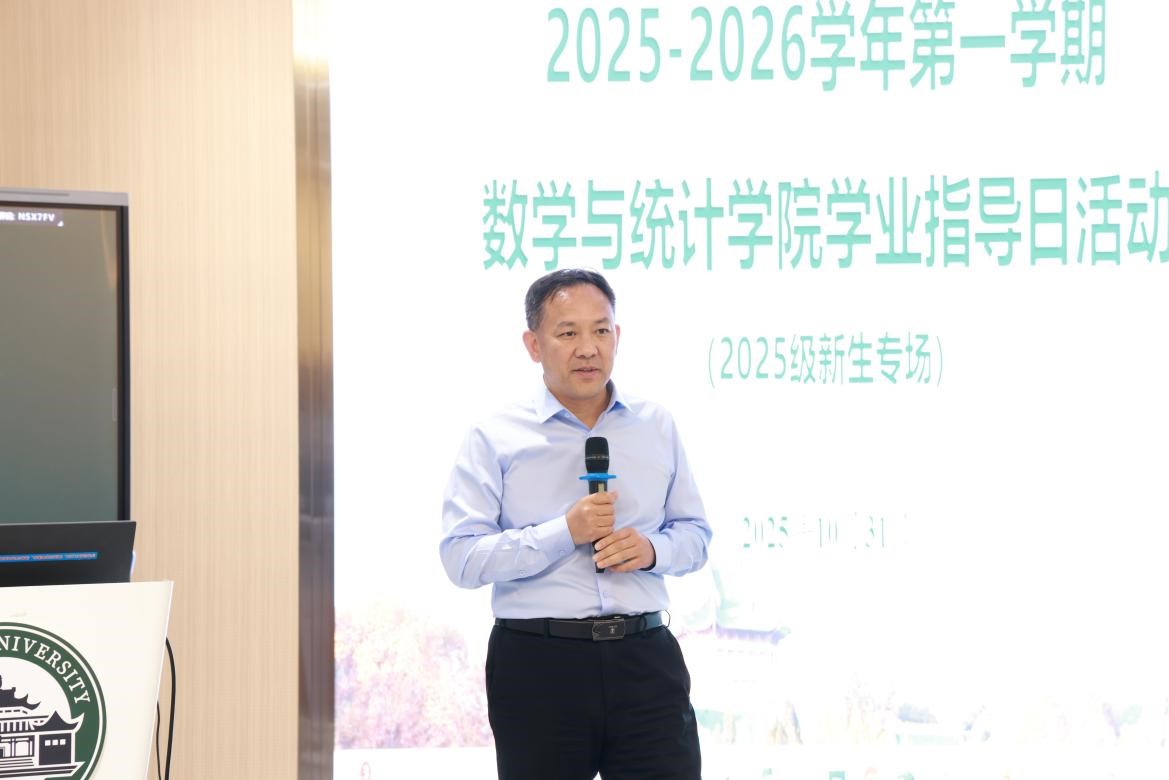 范辉军与同学们探讨教育改革带来的机遇与挑战。他强调,在国内高校深入推进课程改革的大背景下,学院也顺应教育改革浪潮,对课程体系进行了系统性重构,同步革新教学内容和教学方法,旨在全方面提高同学们在未来激烈竞争中的核心竞争力。他指出,学院制定“攀登计划”、“数学+”项目,开辟学业与职业新路径,为不同志趣与潜质的学生构筑多元化的发展通道。他结合自身求学经历,坦诚分享了大一时的适应期与挫折,鼓励同学们:“遇到困难是转型期的常态,关键在于正视困难,并掌握‘大学的学习方法论’——主动求助、加强讨论、善于归类、逐一击破。”