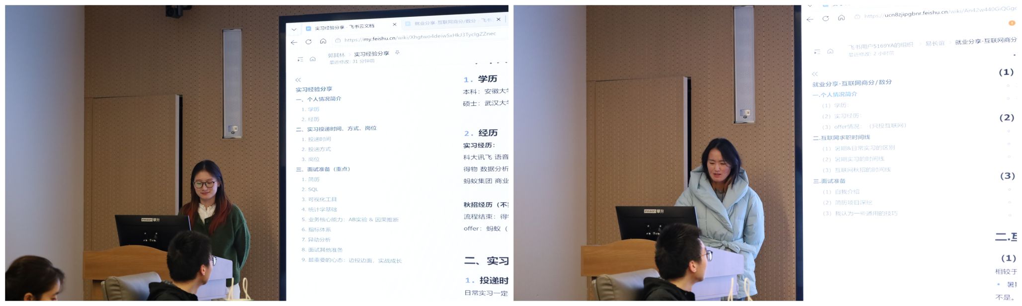 金融就业方向,邓海同学结合量化实习经历与秋招实战经验,从金融单位精准筛选、笔试核心考点备战、多元化面试技巧三个方面展开分享,叮嘱同学们夯实金融专业知识功底,针对半结构化、无领导小组讨论等多种面试形式做好全面准备,以专业实力应对金融行业求职挑战。