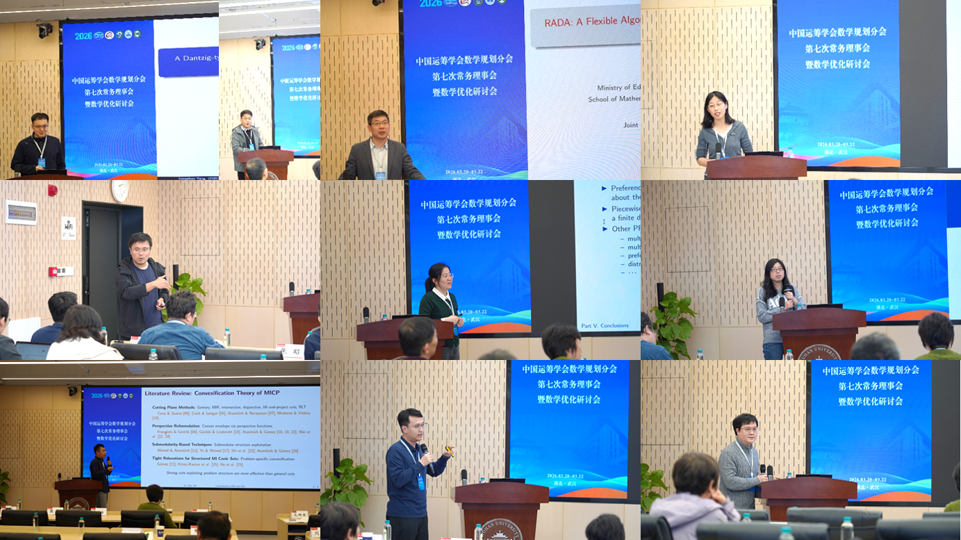 3月21日至22日,由中国运筹学会数学规划分会主办,武汉大学数学与统计学院、国家天元数学中部中心、湖北应用数学中心承办的数学优化研讨会在武汉大学数学与统计学院顺利召开。来自全国众多高校及科研院所的专家学者齐聚一堂,围绕数学优化领域的前沿问题与发展趋势展开深入交流与探讨。
