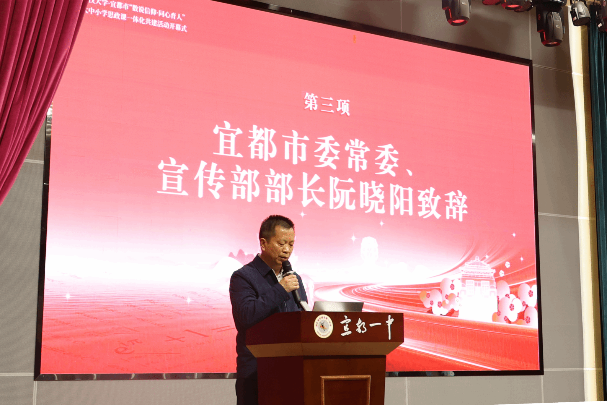 宜都市委常委、宣传部部长阮晓阳在致辞中强调,宜都市委高度重视此次校地合作,将加强统筹协调、精心谋划部署,要求教育部门精心组织、教研部门深度参与,充分发挥地方中小学特色优势,对接高校学科与思政优质资源,打造校地协同推进大中小思政课一体化建设、“数学+思政”融合育人建设的示范标杆。